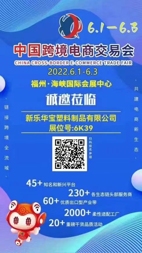 新樂華寶塑料制品有限公司于2022年6月1-3日跨境電商交易會(huì),誠邀您的參加!
